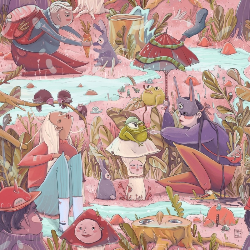 Егор не боится использовать яркие контрастные цвета и четкий контур. Также он проводит консультации и обучает начинающих иллюстраторов своему ремеслу.