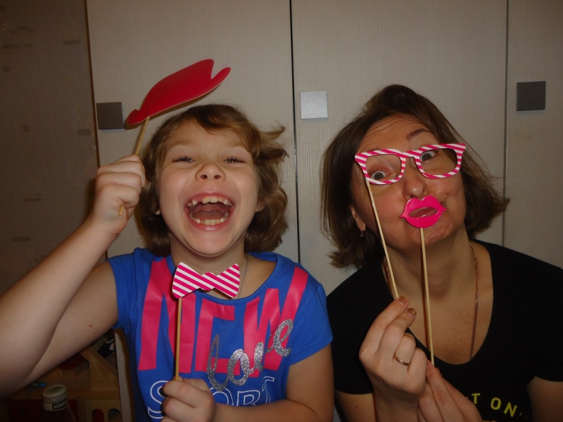 Другая моя фотография, где я с дочкой примеряю на себя маски. Муж фотографировал. И маски-то простые, но сколько радости было у нас, когда мы их подносили к лицу, комбинировали, менялись с дочкой. Посмотрите на наши счастливые лица — эту радость в глазах невозможно подделать! И вроде бы полная ерунда, мелочь, простые и недорогие маски, муж купил. А сколько радости, сколько эмоций, незабываемый день и яркие фотографии на память! Повода тоже никакого не было, получилось совершенно спонтанно. Что лишний раз подтверждает, что запланированного счастья не бывает.
