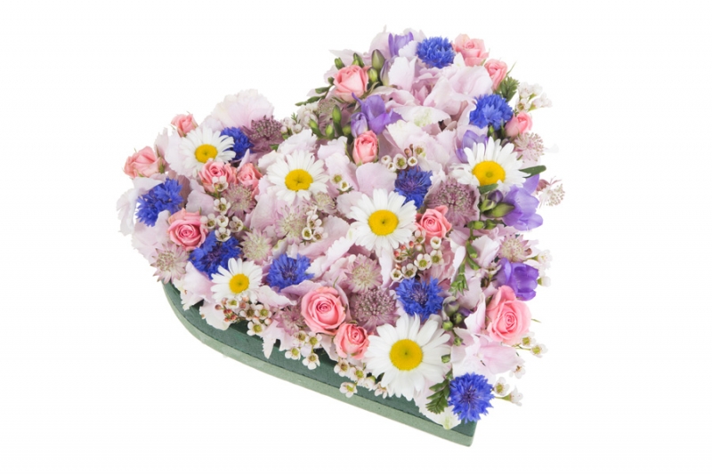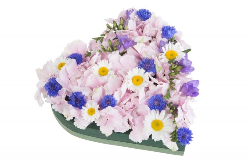Пожалуй, ромашки — одни из самых жизнерадостных цветов. А с недавних пор их выбрали официальным символом Дня семьи, любви и верности, который ежегодно отмечается 8 июля, в период кульминации цветения полевых растений. Если вы отмечаете этот новый для России праздник или просто хотите порадовать свою вторую половинку и создать в городской квартире луговое настроение — предлагаем решение. Цветочная композиция в виде сердца сохранит свежесть не один день и запомнится надолго. Как сделать этот необычный букет своими руками, рассказывают специалисты компании