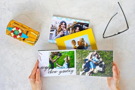 Вариант подарка, тематически связанного с упомянутой выше идеей, это альбом с вашими фотографиями, который можно собрать своими руками из уже имеющихся снимков (или тех, которые появились после фотосессии на прогулке). Либо же, вместо того, чтобы клеить фото, вручную оформлять страницы, придумывать обложку — можно заказать фотокнигу, которая будет автоматически собрана из загруженных вами кадров.