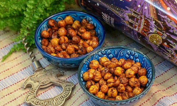 Для закуски нут предварительно отваривают в подсоленной воде, после отправляют подсушиваться в духовку, а затем смешиваю с пряной масляной...