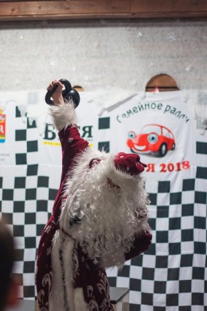Дед Мороз показал пример папам в поднятии гири, инструктор Красного креста Василий Должанский провел мастер-класс по оказанию первой помощи, а историк Александр Музафаров рассказал про первых российских автогонщиков и о том, как проходили первые авторалли сто лет назад.