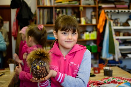 Нужно отдать должное педагогу. Занятие начала с рассказа о жизни сов, даже провела среди детей небольшую викторину. После образовательного разогрева в ход пошла фантазия. Дети оформляли свои поделки, обсуждали и сравнивали. Общались по полной программе.