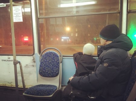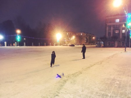 Морозный вечер. Малолюдные улицы. Из замерзшего фонтана в парке раздается хохот – папа с дочкой валяются в снегу. На пустой центральной площади мужчина с ребенком запускает самолетик. В полупустом трамвае отец что-то объясняет сыну, глядящему в окно. День отца в Череповце прошел, жизнь отцов идет своим чередом…