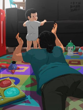 Картинки расходятся по интернету и зрители в разных странах мира могут увидеть, что мужчина может быть не менее заботливым, внимательным и умелым по отношению к малышу, чем женщина. И уж точно – не менее любящим. Художник разрушает привычный стереотип, предполагающий, что отец должен проводить большую часть жизни вне дома, и призывает не недооценивать значение отцовского воспитания и отцовской любви.