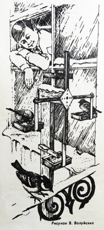 Материал журнала «Семья и школа», № 11, ноябрь, 1984 г. Один писатель назвал свою прекрасную книгу для детей «У человека должна быть собака». Это верно, потому что добрые чувства должны развиваться с малых лет. Должны-то должны, но собаку может иметь далеко не каждый горожанин. Кого же окружить заботой? Советуем завести «своих» синиц или других птиц, но не в клетке, а вольных, на балконе, куда они регулярно будут прилетать за едой. Приятно, что это будут птицы, которых вы будете знать «в лицо»; а они постепенно перестанут вас бояться: будут охотно садиться на плечо, брать корм с ладони. Добрые чувства, рожденные дружбой с пичугами, дополняются и немаловажной пользой для нас самих. В городе, например, нельзя применять для защиты растений ядохимикаты, да и нужды в этом особой нет, так как с деревьев и кустарников в городе не снимают урожаев. Кому же, как не птицам, защищать зеленые городские насаждения от насекомых-вредителей. И первое место среди губителей насекомых занимают синицы. Ну как не подкормить милых певуний в холодное время? Они ведь гибнут не от холода, как принято думать, а от голода. Заготовки корма лучше всего начать осенью. Если в кормушках всегда будет лакомая для синиц пища, они приведут к ней выводки птенцов и в летнее время. Зимой же к кормушке будут слетаться десяток синичек и вездесущие воробьи; поползень и дятел – редкий гость. Корма Иногда рекомендуют запасать с осени ягоды и семена дикорастущих. Вряд ли надо следовать этому совету; ведь наша главная задача – подкормить синиц и других насекомоядных птиц, а они ни ягод, ни семян сорняков не едят. Да и какой смысл собирать, скажем, рябину, если на дереве ягоды и сохраняются значительно лучше, и доступны птицам. Кроме того, опыт показывает, что дети при заготовке рябины ломают ветви, а при сборе семян сорняков невольно их «сеют», поэтому ущерб может оказаться существеннее, чем польза. Для синиц с осени нужно запасать семена дыни, тыквы и арбуза. Тыквенные и арбузные семена воробью не расклевать (правда, арбузные не сильном морозе не одолеть и синице). Собранные семена ополаскивают водой и, просушив на бумаге, хранят в пакете. Сильнее всего больших синиц в кормушке «радуют» подсолнухи и конопляное семя. Но можно насыпать и другие семена. Хороший корм для синиц, особенно в морозное время, — несоленое сало и мясо. Мы кормили синиц кроличьим и заячьим жиром и мясом. Все остатки (бараньи, куриные, кроличьи, заячьи) мы собирали в холодильнике и перетапливали. (Бараний жир на морозе сильно затвердевает, и добавка куриного или гусиного делает его более мягким.) Жир – основа для приготовления кормовых смесей. Простейшая из них – распаренная овсяная крупа «геркулес», сдобренная жиром. Кроме того, в кормовую смесь можно добавлять мелко нарезанные корочки сыра, вареного мяса, растолченные белые сухари. Кормушки Кормушки можно сделать разных размеров и конструкций. Удобнее такие, в которых корм засыпается сразу на неделю-две, он укрывает от дождя и снега и постепенно высыпается на кормовой столик. Широкое распространение приобрела кормушка, предложенная автором этих строк. Такую кормушку лучше сделать двухсторонней. Бывает, что на полочке устроится снегирь – птица крупная и сильная: сидит, шелушит неспеша подсолнухи и никого больше не пускает. Для такого случая и хороша двусторонняя корм