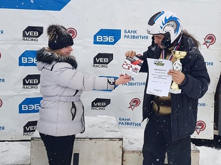 Дмитрий Корниенко получает очередную награду за победу (2 место) в ралли-спринте, январь 2019, фото из личного архива