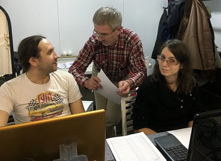 Главный судья ралли «Батя» Сергей Ушанов с Дмитрием Корниенко и Екатериной Комаровой. Подсчет результатов. 3 января 2019 г.
