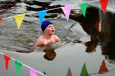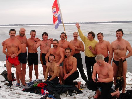 — Правильно, сначала в прорубь. Когда окунаешься в ледяную воду, то организм переживает стресс, включает все свои резервы, активизирует все свои функции и прогревается изнутри. Температура тела понимается до 40 градусов. После этого можно в баню, прогреться снаружи. Потом снова в прорубь и опять в парилку. И так несколько раз.