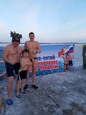 — Данилу сейчас уже двадцать один год, а в прорубь он напросился в двухлетнем возрасте. Первое или второе мая было. Привезли китайцев поплавать на набережную Зеи. Вода еще холодная, лед местами лежал. Данил смотрит, все раздеваются, окунаются, говорит: «Тоже хочу!». В итоге мы его окунули.
