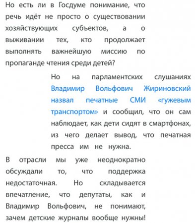 Во всей стране сейчас детских СМИ всего лишь около 200 штук, и, по-хорошему, они должны быть взяты на государственное обеспечение. Но этого ведь не будет, поэтому сейчас все они в панике и с трудом выживают. Некоторым, я знаю, квартиры приходится продавать, чтобы с долгами расплачиваться и свои журналы сохранять.