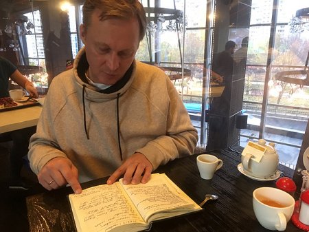 — Я постоянно записываю. Вот у меня записная книжка. У Александра Молчанова, у которого я учился не только на сценарных, но и можно сказать, на жизненных курсах, я узнал, что нужно постоянно записывать в двух словах, как день прошел: звонил тому-то, работал над текстом… Это структурирует жизнь. Иначе теряешь контроль. Не дневник – а коротко, что успел, что не успел. А если какая-то история произошла, я ее напишу в Фейсбук.
