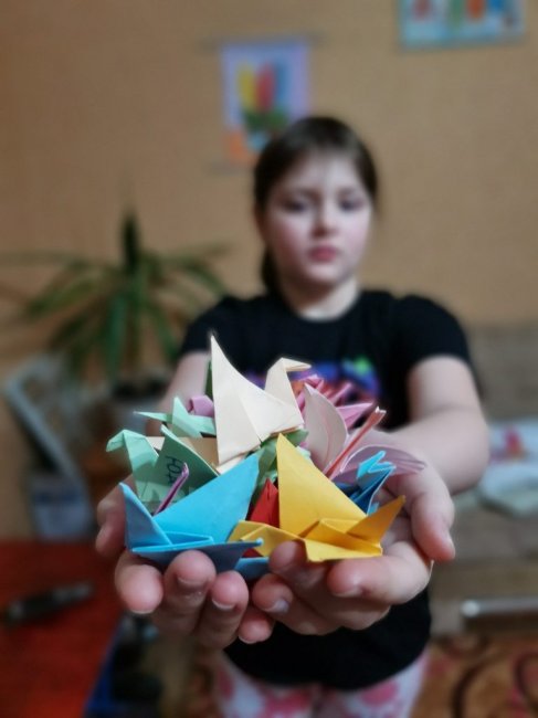 Самое большое удивление — наши продвинутые дети очень далеки от монотонного созидательного труда. При этом мало кто подозревает, сколько радости вызывает его результат. Нашими бумажными журавлями уже обеспечены все одноклассницы и подружки. Еще ни одна не отказалась, и не сказала «Фу!».
