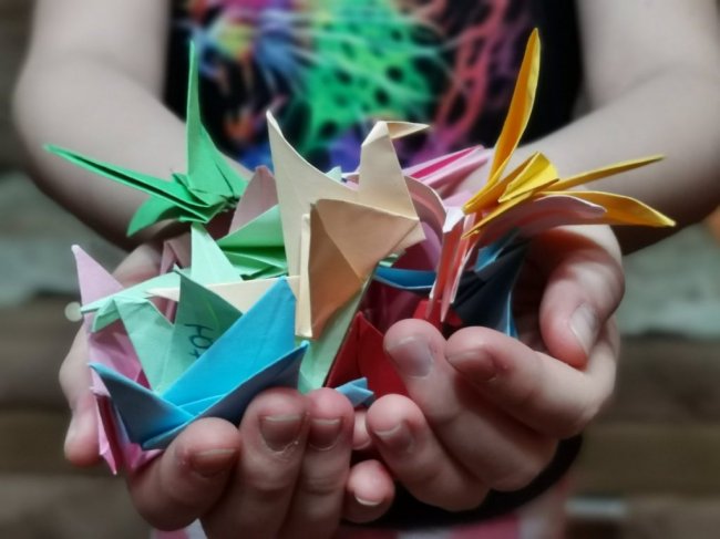 Эту историю моя дочь узнала во время классного часа (школы готовятся к празднованию 75-летия победы в Великой Отечественной и Второй Мировой войнах). В качестве домашнего задания, учитель сказал детям сделать по такому журавлику. Естественно, ребенок попросил о помощи.
