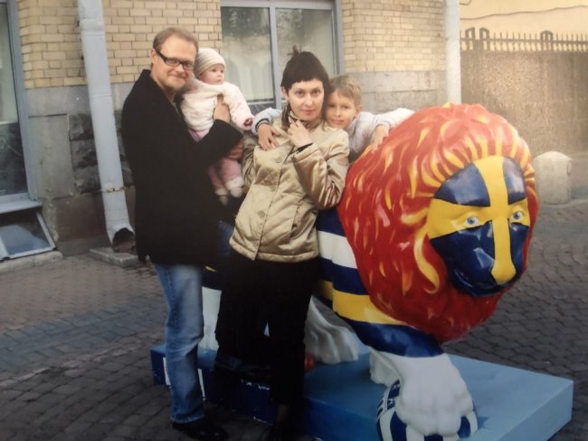 Игорь Копылов с женой Юлией, сыном Семеном и дочкой Глафирой. 2007 г.
