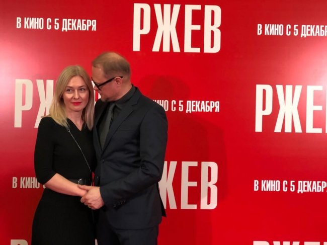 Игорь Копылов с женой Юлией на премьере фильма «Ржев».