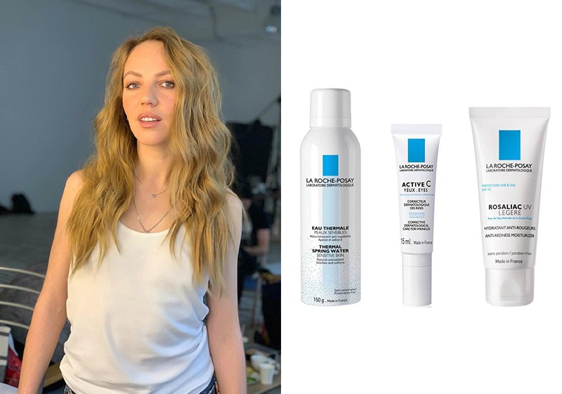 Всегда ношу с собой термальную воду Eau Thermale. Очень люблю средства La Roche-Posay за супер увлажнение. Кроме термальной воды регулярно использую крем Active C Yeux для кожи вокруг глаз и эмульсию Rosaliac UV Legere с SPF 15. Последняя маскирует покраснения и выравнивает цвет лица.