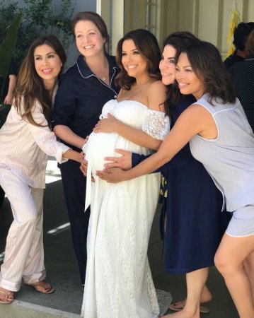 Незадолго Ева Лонгория устроила вечеринку в честь рождения будущего сына, ее посетили многие друзья актрисы. Беременная красавица не прекращала принимать участие в откровенных фотосессиях, демонстрируя всему миру округлившиеся формы.