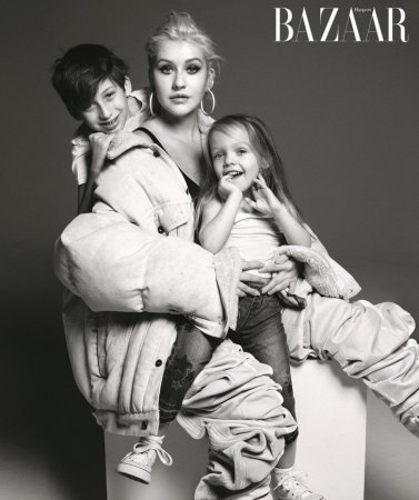 Звездные родители со своими детьми украсили снимками журнал Harper's Вazaar. Среди них была и знаменитая певица Кристина Агилера, которая позировала для сентябрьского номера вместе сыном Максом и дочкой Саммер. Звездная мама только недавно впервые показала его на своей странице, ранее мальчика могли видеть только благодаря стараниям вездесущих папарацци. Для новой фотосессии, в которой приняла участие голосистая дива, она позировала в мешковатой куртке и ботфортах со складками.