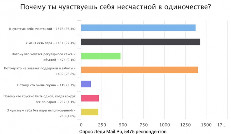 А вот несчастной одинокая женщина чувствует себя в основном потому, что ей не хватает поддержки и заботы. Так ответили 26.8% наших опрошенных.