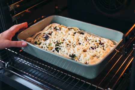 Посыпать тертым сыром (выбирайте не сильно соленый) и отправить в разогретую до 180 градусов духовку на 20- 25 минут.