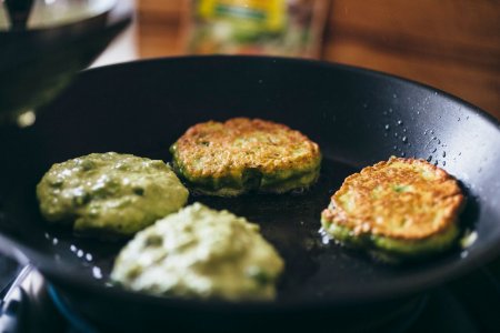Ложкой выкладывать массу на разогретую с растительным маслом сковороду и обжаривать с обеих сторон до золотистой корочки.
