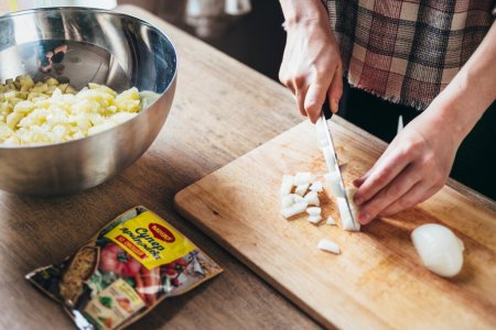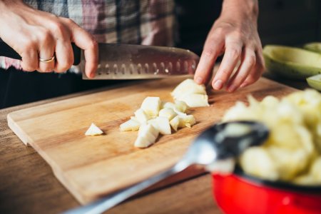 Опустить кабачки на 4-5 минут в кипящую подсоленную воду, затем остудить. Кабачковую мякоть нарезать кубиком.