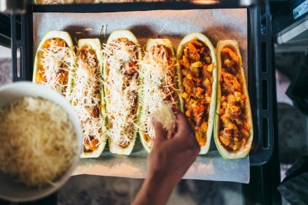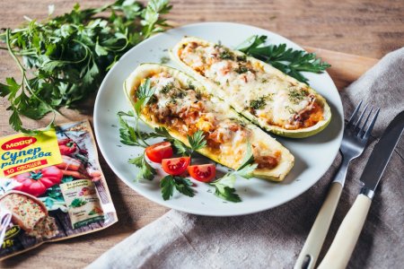 Многие дети отказываются есть кабачки в «чистом виде», например, тушенные с луком и морковью. А вот против кабачковых оладушков или – как в нашем случае – фаршированных «лодочек» ничего не имеют.