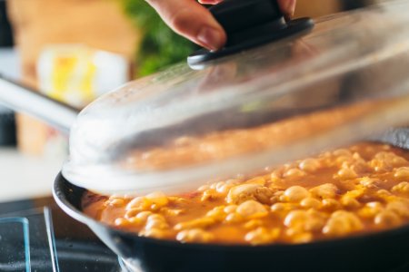 Довести до кипения, уменьшить огонь и тушить под крышкой 30 минут, периодически помешивая.