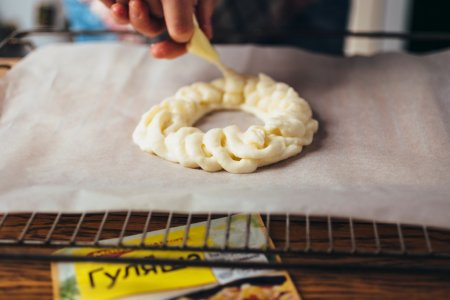 Сделать кондитерским шприцем гнезда из пюре, слегка запечь.