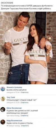 Но теперь, когда выяснилось, что у Тарасова и Костенко вскоре ожидается и увеличение семьи, поклонники искренне переживают за Бузову и опасаются, что с нею может случиться настоящий нервный срыв. В СМИ уже размещены сведения о том, что Анастасия ожидает ребенка. Правда, срок беременности пока невелик, но и она, и Дмитрий с нетерпением предвкушают момент, когда они станут матерью и отцом. Фанаты полагают, что Ольга попытается справиться с душевной болью с помощью спиртных напитков, как это уже происходило с нею после окончательного разрыва со спортсменом. К тому же заключение помолвки ее прежнего спутника жизни заставило Бузову прибегнуть к немалому количеству алкоголя.