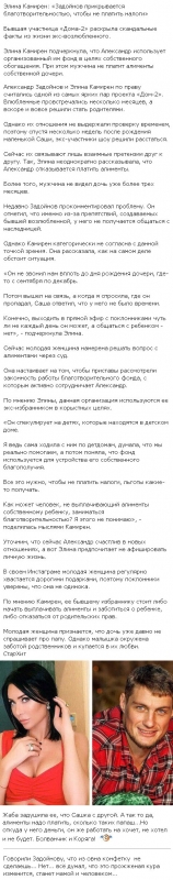 7 января 2018 года вышедшая из терпения Элина Камирен не пожелала далее молчать и от души высказала все, что она думает относительно Александра Задойнова. Всем уже известно о том, что в судьбе Александра не так давно появилась новая любимая им женщина. На этот раз Задойнов выбрал в качестве подруги свою землячку по имени Ольга Коваль. Правда, речь еще не идет об официальном бракосочетании, но эти двое уже проживают совместно, и мужчина старается стать настоящим отцом для сына возлюбленной. Смотрите также: дом 2 вечерний эфир 10.01.2018 При этом своей родной дочери Саше Александр уделяет значительно меньше времени и внимания. Совсем недавно бывшая гражданская жена Задойнова сообщила о том, что он не встречался с девочкой уже более трех месяцев и объявился лишь накануне дня рождения Сашеньки, сославшись на крайнюю занятость. Камирен приводит в ярость и то, что она все еще не получила от прежнего бойфренда ни единой копейки на содержание их общего ребенка. Если ранее Элина еще рассчитывала договориться с Задойновым полюбовно, то теперь она жестко настроена прибегнуть к помощи суда в решении этого вопроса. Более того, женщина требует, чтобы судебные приставы детально проверили работу благотворительной организации, с которой постоянно сотрудничает Александр. По мнению молодой мамы, мужчина использует этот фонд исключительно в качестве средства для собственного обогащения, и многие из его действий однозначно являются нарушением существующего законодательства. Свое мнение о позиции Элины Камирен по поводу Александра Задойнова вы можете изложить в комментариях.