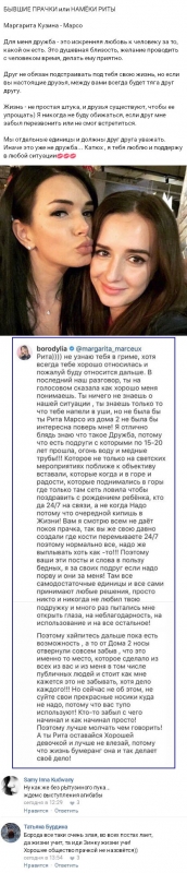 Именно этот вариант Жужа предпочла изложить и Марсо. В результате Маргарита сочла необходимым защитить подругу в социальных сетях, что фактически прозвучало обвинением в адрес Бородиной, чего уже никак не могла выдержать Ксения.