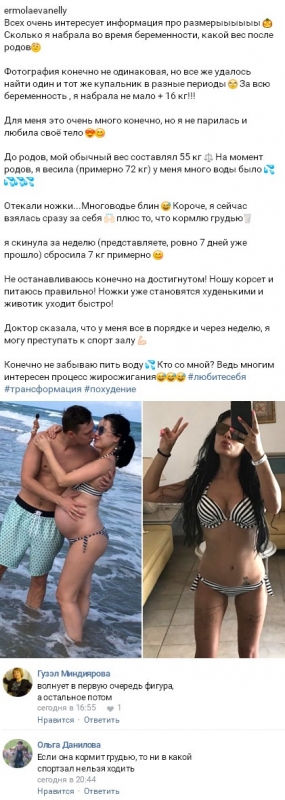 Хотя сама женщина не слишком довольна собственной фигурой, на подписчиков явно произвел впечатление ее фотоснимок в купальнике. Многие полагают, что уже сейчас Ермолаева выглядит так, как будто ей никогда не доводилось рожать, хотя со времени появления на свет ее ребенка прошло совсем немного времени.