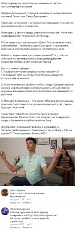 3 марта 2018 года Ольга Рапунцель просто потрясла поклонников телестройки откровенным рассказом о том, как она позволяет себе физическую близость на последнем месяце «интересного положения». Уже на протяжении нескольких недель Ольга и ее супруг Дмитрий Дмитренко пребывают в декретном отпуске, готовясь к появлению на свет их малышки. Однако эти двое так и не сумели отказаться от постоянного контроля камер. Выяснилось, что Рапунцель и Дмитренко стали участниками телепрограммы «Агент 003», где у молодого мужчины появилась возможность почувствовать себя в состоянии ожидания ребенка. Смотрите также: дом 2 дневной вечерний и ночной выпуск за 06/03/2018 г Как утверждают будущие родители, данный эксперимент стал для них весьма полезным, в частности, Дмитрий наконец понял, какие ощущения испытывает его беременная жена, и теперь он согласен воспринимать ее капризы более терпеливо и мягко. Оля и Дима также сообщили окружающим об изобретенном ими самими ноу-хау. По словам Рапунцель, даже в самом конце ее «положения» они не перестают вступать в интимные контакты, предпочитая позу «ложки». Нет ничего удивительного в том, что подобные заявления пришлись по вкусу весьма немногим людям. Недоброжелатели глубоко возмущены чрезмерной сексуальной озабоченностью Рапунцель и удивляются, как она еще не запечатлела и не разместила на всеобщее обозрение в Интернете этот позор. Свое мнение о сведениях, полученных от Ольги Рапунцель и Дмитрия Дмитренко, вы можете высказать в комментариях.