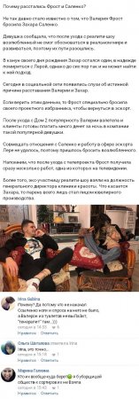 Свое мнение о том, действительно ли Валерия Фрост решила покинуть Захара Саленко ради возвращения к работе в эскорте, вы можете изложить в комментариях.