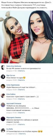 В виртуальном пространстве уже ходят многочисленные сплетни о предстоящем возвращении Марии на телешоу. Правда, пока неизвестно, ради кого из представителей сильного пола Кохно желает опять оказаться в периметре, но предполагается, что Алене Савкиной и Александре Шева необходимо быть максимально внимательными и осторожными, ведь именно с их возлюбленными эта девушка в прошлом пыталась построить взаимоотношения, причем не только на телестройке.