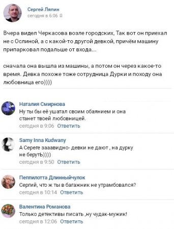 С помощью Сергея Ляпина, продолжающего живо интересоваться всеми проектными событиями и подкараулившего Черкасова близ городских квартир, выяснилось, с кем именно встречается мужчина. Как утверждает Сергей, из автомобиля Андрея сначала вышла его новая возлюбленная, которая, судя по всему, относится к категории сотрудников телешоу. Позднее сам Черкасов также покинул машину, но постарался сделать это в отдалении от места, где была высажена его нынешняя подруга.