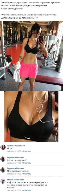 Очередным и весьма убедительным доказательством того, что Виктория подвергается интенсивному процессу старения, оказалась одна из последних фотографий, размещенных на ее страничке в социальной сети Инстаграм. Подписчики заметили, насколько дряблой выглядит грудь Романец, сделанная из силикона, которая превращает ее в крайне пожилую и непривлекательную даму. При этом многих смутило и то, что сама девушка почему-то не замечает очевидных вещей и не перестает выдавать окружающим истинное положение дел такими фотоснимками.