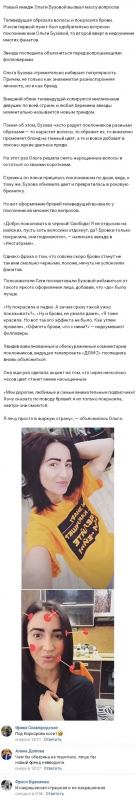 Если исходить из множества весьма негативных комментариев, новый образ телеведущей возмутил и ужаснул поклонников, большинство из них сочли, что теперь Ольга выглядит чрезвычайно вульгарно. А недоброжелатели без стеснения употребили в отношении Бузовой сравнение с транссексуалом. В итоге женщине пришлось успокаивать людей, тщательно контролирующих ее страничку в социальной сети Инстаграм.
