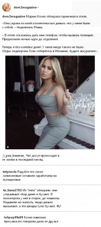 21 мая 2018 года Мария Кохно, оказавшаяся в чрезвычайно неприятной и проблематичной ситуации, не получила возможности даже обратиться за помощью в правоохранительные органы. Совсем недавно фанаты реалити-шоу выражали самое искреннее и горячее сочувствие Татьяне Охулковой, ставшей жертвой воровства во время проведения отпуска в Испании. Тогда Мария даже разместила в Сети специальный пост, посредством которого она призывала неравнодушных людей оказать содействие Охулковой, попавшей в столь нелегкое положение. К тому же Кохно рассказала и о том, что пребывание на отдыхе ее и ее подруги и коллеги по телешоу оказалось целиком испорченным, ведь у Тани были украдены не только кредитные карточки и все наличные деньги, но и телефон. Но едва ли Маша могла предположить, что подобное произойдет и с нею самой, причем буквально через несколько дней. По словам Кохно, ее обокрала горничная, работающая в гостинице, где остановилась Мария. Из косметички молодой женщины были извлечены все находящиеся там денежные средства, в то время как служащие отеля даже не сочли нужным предложить Маше какую-либо помощь, учитывая создавшуюся ситуацию. Девушке не был предоставлен и телефон для того, чтобы связаться с полицейскими. А идти ночью в отделение Мария все же не осмелилась. Свое мнение о том, как вы оцениваете происшедшее с Марией Кохно, вы можете изложить в комментариях.