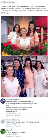 Видеозапись со съемок телестройки, в которой принимают участие Татьяна Владимировна Африкантова, Ирина Михайловна Донцова, Ольга Васильевна Гобозова и Марина Тристановна Абрамсон, доступна для просмотра здесь.