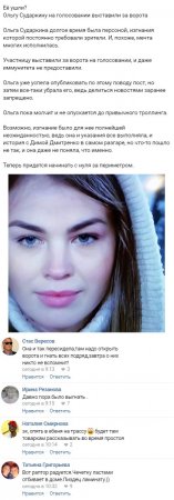 При этом сама девушка вовсе не торопится давать комментарии относительно происшедшего. В течение первых часов после расставания с проектом Оля разместила в виртуальном пространстве полный ярости пост, где не стала щадить ни прежних товарищей по периметру, ни руководство телепередачи. Но затем Сударкина предпочла удалить данную запись и в настоящее время сохраняет полное молчание.