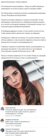6 июня 2019 года участников телевизионного проекта повергли в шоковое состояние новые правила, недавно введенные в действие руководством телестройки. До самого последнего времени герои телешоу, проживающие на Сейшелах, считали себя абсолютно неприкосновенными, особенно по сравнению с теми, кто пребывал на Поляне. Ни для кого не является секретом то обстоятельство, что жителей Острова любви ранее никогда не номинировали на уход с телепрограммы, к тому же их надежно оберегал иммунитет. Но, видимо, организаторы телепередачи приняли решение более никого не щадить. Потрясенная Ирина Пингвинова накануне рассказала подписчикам о том, какие правила отныне будут существовать на телестройке. Как утверждает испуганная Ира, теперь в одинаковой степени рискуют буквально все персонажи телешоу, в том числе и жители Сейшел. Оказалось, что иммунитет для «островитян» уже отменен. Теперь любой из героев программы может стать номинантом на голосовании и уйти с телепередачи в одну из предстоящих суббот.