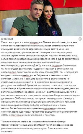 Один из земляков Федулова решился изложить в Интернете всю правду о нем. Как выяснилось, Никита уже неоднократно занимался противозаконными финансовыми аферами, ранее ему пришлось провести 7 месяцев в местах лишения свободы. При этом парень постоянно заводил отношения с представительницами противоположного пола, у которых он самым бессовестным образом вытягивал денежные средства. Сейчас финансовая задолженность Федулова почти равна миллиону рублей, однако молодой мужчина, видимо, и не намеревается возвращать данную сумму.