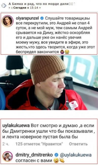 По словам самой Рапунцель, она уже чрезвычайно устала от подобного отношения к себе и своим близким. Ольга подчеркнула, что ее терпение уже однозначно иссякает, и уже в ходе ближайших проектных эфиров чета Дмитренко снова заговорит о прощании с телевизионной программой. При этом мать маленькой Василисы не проинформировала подписчиков о том, подвергся ли Андрей Шабарин какому-либо взысканию за его агрессивные действия в отношении товарища по телестройке.