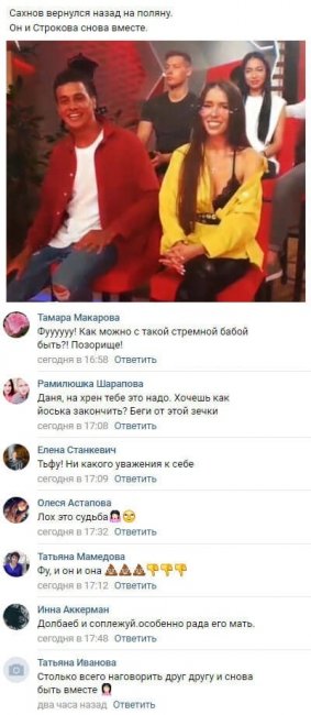 Выяснилось, что Сахнов решил подарить их отношениям со Строковой новый шанс. Даня сумел вымолить у Татьяны прощение за прежние ошибки, тогда как сама молодая женщина дала слово измениться ради бойфренда. Однако уже в настоящее время подписчики почти не сомневаются в том, что при первом же конфликте между этими двумя Таня снова продемонстрирует далеко не самые приятные свойства характера, и соответствующая пара опять перестанет существовать.