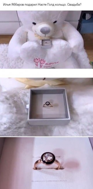 Илья и прежде регулярно утверждал, что уже до завершения нынешнего года он станет официальным супругом Голд. Если исходить из кадров, уже распространившихся по всем социальным сетям, подходящий день для такого действия уже наступил. В эфире от 8 марта зрители смогут созерцать, как Яббаров преподнесет Насте не только шикарный букет роз, симпатичную мягкую игрушку и шарики, но и дорогостоящее ювелирное изделие.