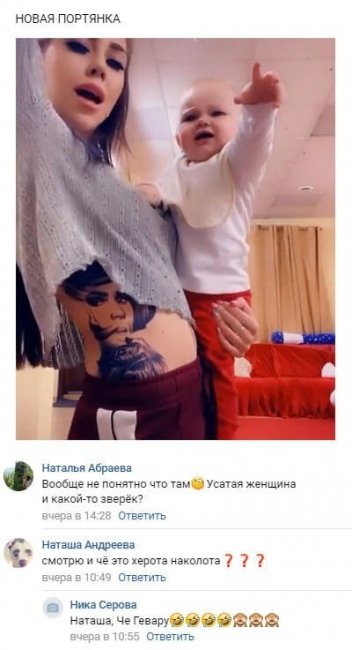 Но большинство фолловеров мамы маленького Богдана сочли ее новое тату весьма неудачным. При чрезвычайно крупном размере изображения далеко не все смогли понять, что именно оказалось нанесенным на тело Алены. Если некоторые из подписчиков разглядели в татуировке усатую представительницу прекрасного пола, то других удивило и заинтересовало необычное существо с большим количеством волос, оказавшееся в самом низу получившейся картинки.