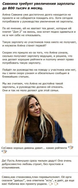 Алена Савкина потребовала баснословного увеличения зарплаты - «НОВОСТИ ДОМ 2»